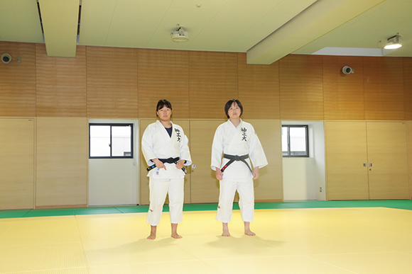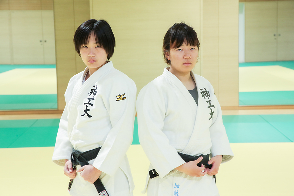 2024年6月の「第65回全日本理工科学生柔道 個人戦女子の部」では準優勝を、10月には「第79回神奈川県学生柔道秋季大会 女子団体(3人制)の部」で、初優勝を果たした柔道部の女子部員たち。学業と両立させながら柔道に打ち込む、KA・Mさん(情報学部 情報メディア学科 3年)とKU・M さん(健康医療学部 管理栄養学科 2年)に、普段の練習や学業との両立などについてお聞きしました。
